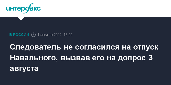Москва. 1 августа. INTERFAX.RU - Следствие официально отказало оппозиционеру и блогеру Алексею Навальному, обвиняемому по делу "Кировлеса" и находящемуся под подпиской о невыезде, в просьбе съездить в отпуск.