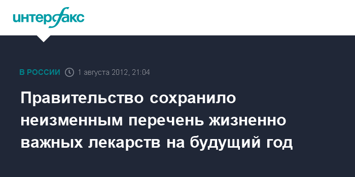 "Установить, что в 2013 г. применяется перечень жизненно необходимых и важнейших лекарственных препаратов на 2012 год, утвержденный распоряжением Правительства Российской Федерации от 7 декабря 2011 г. № 2199-р", - говорится в распоряжении, подписанном премьером РФ.