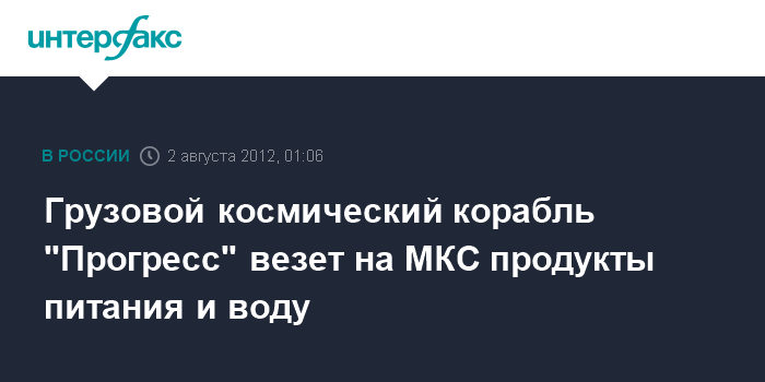 Грузовой космический корабль "Прогресс" везет на МКС продукты питания и воду