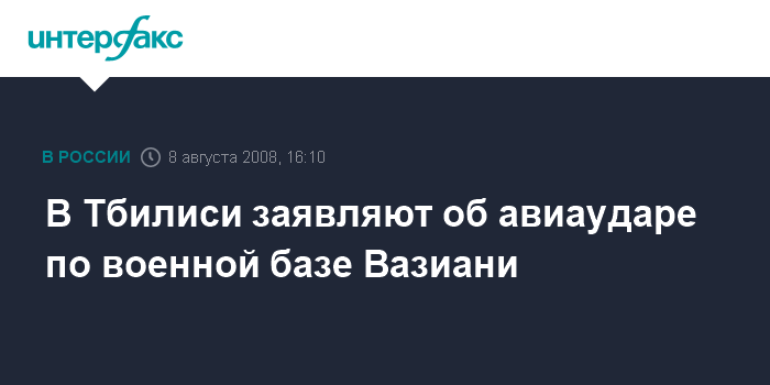 Москва. 8 августа. INTERFAX.RU - Российский военный самолет в пятницу днем совершил бомбовый удар по территории вазианской военной базы в окрестностях Тбилиси.