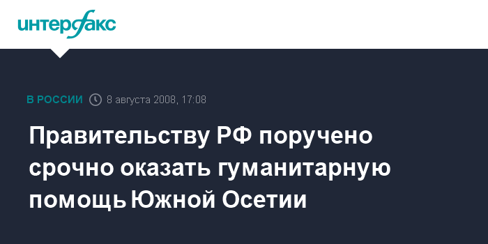 Правительству РФ поручено срочно оказать гуманитарную помощь Южной Осетии