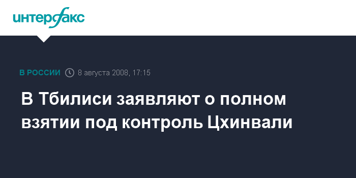 Москва. 8 августа. INTERFAX.RU - Госминистр Грузии по вопросам реинтеграции Темур Якобашвили заявил в пятницу журналистам о взятии под полный контроль грузинскими войсками Цхинвали.