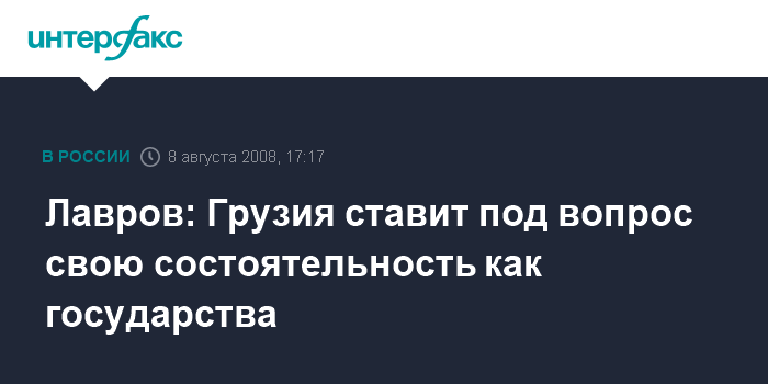 Москва. 8 августа. INTERFAX.RU - Действия Грузии ставят под вопрос ее состоятельность как государства и ответственного члена мирового сообщества, заявил министр иностранных дел России Сергей Лавров.