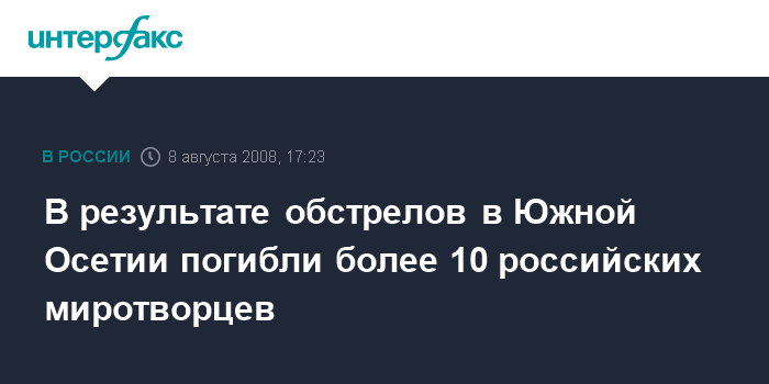 В результате обстрелов в Южной Осетии погибли более 10 российских миротворцев