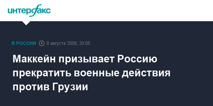 Маккейн призывает Россию прекратить военные действия против Грузии