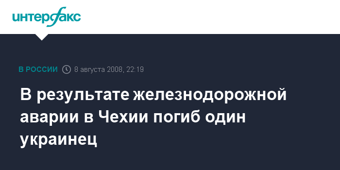 Москва. 8 августа. INTERFAX.RU - Среди погибших в результате катастрофы польского поезда "Евросити" в пятницу в Чехии есть гражданин Украины, который от многочисленных переломов умер в больнице. Об этом в пятницу вечером сообщили в пресс-службе Министерства иностранных дел Украины.