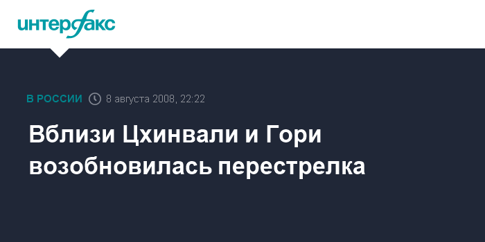 Москва. 8 августа. INTERFAX.RU - По информации грузинских СМИ, в течение последних 20 минут вблизи Цхинвали находящиеся в лесах подразделения Южной Осетии открыли огонь по позициям грузинских военных.