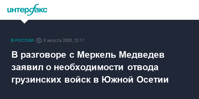 В разговоре с Меркель Медведев заявил о необходимости отвода грузинских войск в Южной Осетии