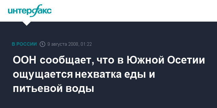 ООН сообщает, что в Южной Осетии ощущается нехватка еды и питьевой воды