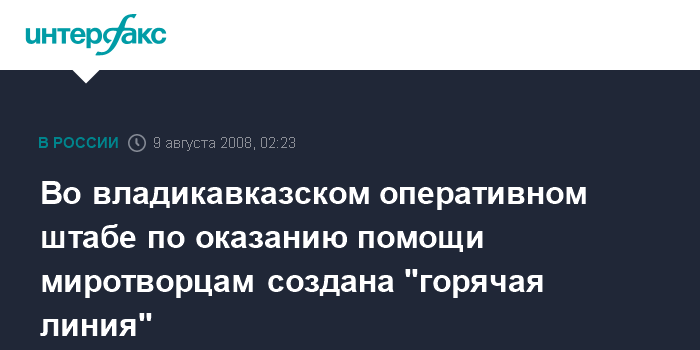 Москва. 9 августа. INTERFAX.RU - В оперативном штабе по оказанию помощи миротворцам под руководством главнокомандующего Сухопутными войсками РФ Владимира Болдырева организована "горячая линия".