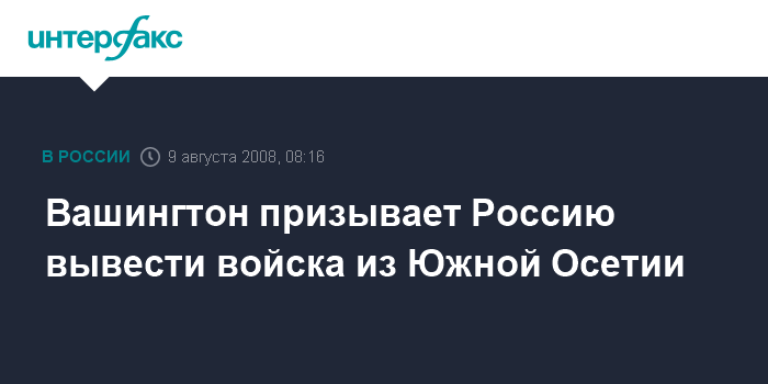 "Мы призываем Россию прекратить воздушные и ракетные обстрелы Грузии, соблюдать территориальную целостность Грузии и вывести сухопутные войска с грузинской территории", - заявила К.Райс, которую процитировала британская телерадиокорпорация ВВС.