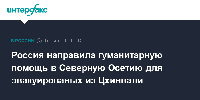 Россия направила гуманитарную помощь в Северную Осетию для эвакуированых из Цхинвали