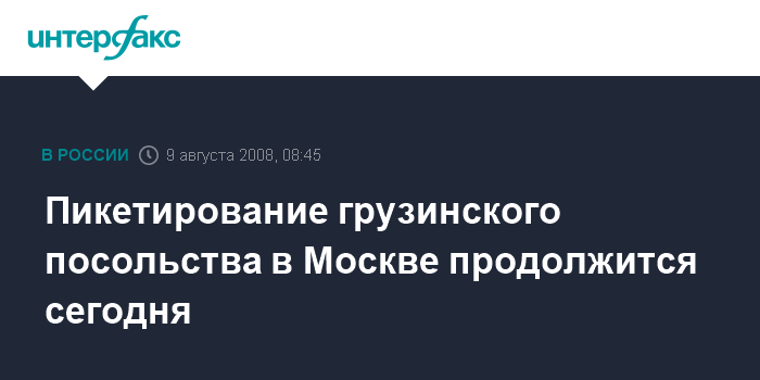 Москва. 9 августа. INTERFAX.RU - Пикетирование, начавшееся в пятницу в 18:30 грузинского посольства в центре Москвы, закончилось, сообщила "Интерфаксу" пресс-секретарь московского отделения "Молодой Гвардии Единой России" Кристина Попова.