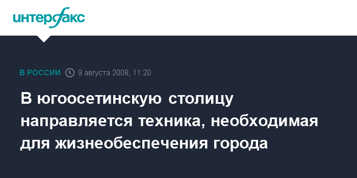 Москва. 9 августа. INTERFAX.RU - В ближайшие часы во Владикавказ, а затем в Южную Осетию самолетами МЧС будут направлены электрогенераторы, системы очистки воды и другая техника, необходимая для жизнеобеспечения Цхинвали, сообщил на совещании у президента РФ в субботу в Кремле глава МЧС Сергей Шойгу.