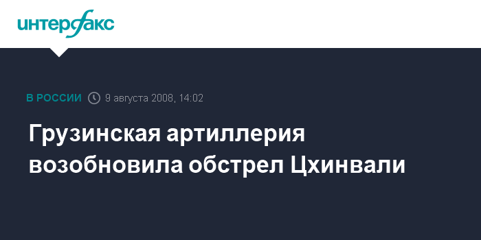Москва. 9 августа. INTERFAX.RU - Грузинская артиллерия около 13:55 мск субботы возобновила обстрел расположения штаба российских миротворцев, передает с места событий корреспондент "Интерфакса".