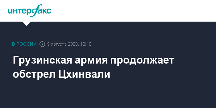 Ранее о возобновлении массированного обстрела города и расположения штаба российских миротворцев сообщил находящийся в Цхинвали корреспондент "Интерфакса".
