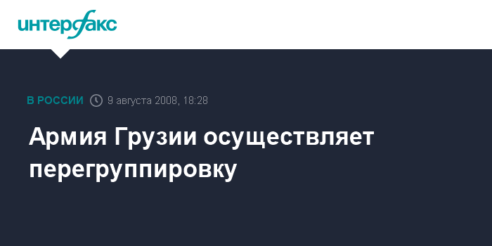 Москва. 9 августа. INTERFAX.RU - Грузинская армия осуществляет перегруппировку сил, сообщила в субботу замминистра внутренних дел Грузии Эка Сгуладзе.