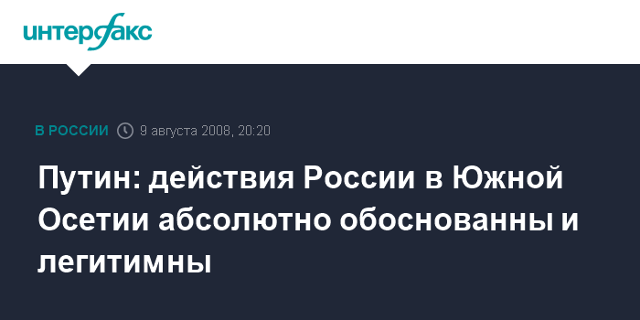 Путин: действия России в Южной Осетии абсолютно обоснованны и легитимны