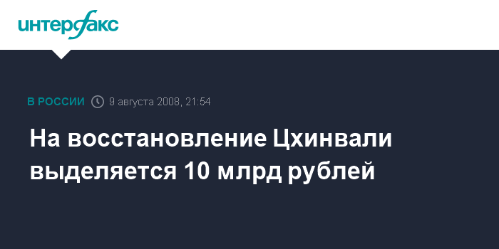 На восстановление Цхинвали выделяется 10 млрд рублей
