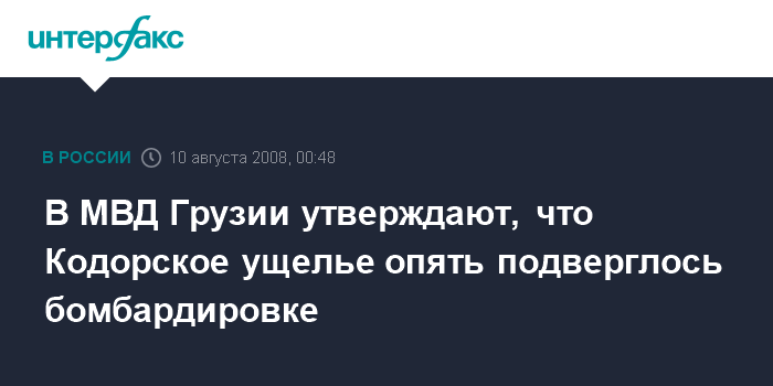 Москва. 10 августа. INTERFAX.RU - Российские военные самолеты поздно вечером в субботу осуществили бомбардировку села Чхалта в Кодорском ущелье, сообщили журналистам в МВД Грузии. Сведений о жертвах или раненных пока нет, отметили в министерстве. "Интерфакс" не располагает информацией Минобороны РФ по этому поводу.