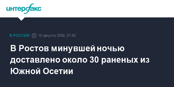 Москва. 10 августа. INTERFAX.RU - В Ростовский окружной военный госпиталь минувшей ночью доставлено около 30 раненых, сообщили агентству "Интерфакс-Юг" в администрации госпиталя. "Доставленные к нам раненые военнослужащие не тяжелые. Им оказана квалифицированная медицинская помощь", - заявил собеседник агентства.