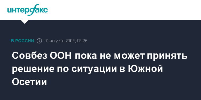 Москва. 10 августа. INTERFAX.RU - Совет Безопасности ООН пока не в состоянии принять никаких решений по обострившейся обстановке в зоне грузино-югоосетинского конфликта, передает телеканал "Вести-24".