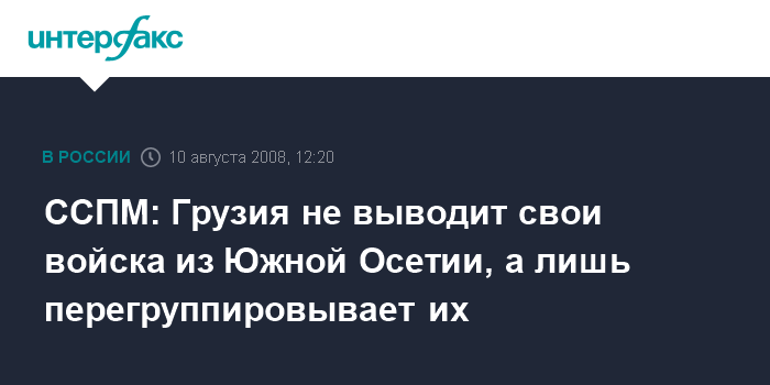 "Говорить о том, что грузинские войска начали вывод своих вооруженных формирований из Южной Осетии, преждевременно. В настоящее время мы наблюдаем лишь перемещение грузинских войск", - заявил "Интерфаксу-АВН" помощник командующего ССПМ Владимир Иванов.