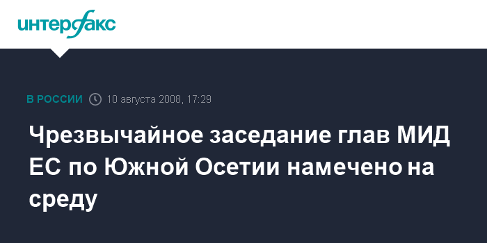 Брюссель. 10 августа. INTERFAX.RU - Министры иностранных дел стран ЕС проведут экстренное заседание по Южной Осетии в среду, сообщила в воскресенье председательствующая в ЕС Франция.