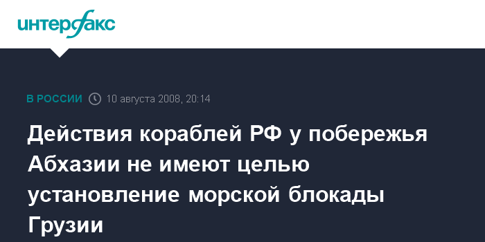 Действия кораблей РФ у побережья Абхазии не имеют целью установление морской блокады Грузии