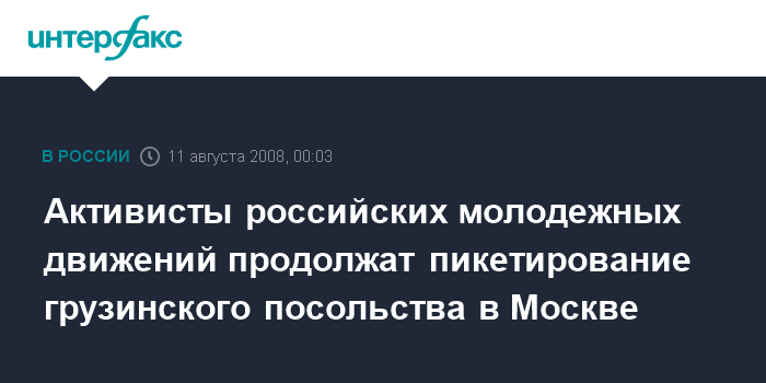 Брюссель. 10 августа. INTERFAX.RU - Активисты молодежного движения "Молодая Гвардия Единой России" продолжат пикетирование грузинского посольства в Москве с требованием немедленного прекращения военных действий в Южной Осетии, говорится в сообщении пресс-службы движения.