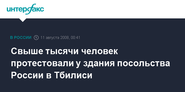 Брюссель. 10 августа. INTERFAX.RU - Более тысячи человек пришли в воскресенье поздно вечером к посольству РФ в Тбилиси. Участники акции выразили против политики России в отношении Грузии, требовали вывода российских войск.