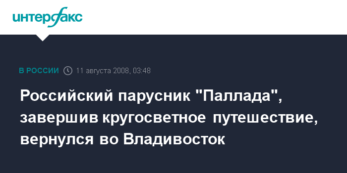 Москва. 11 августа. INTERFAX.RU - Учебное парусное судно "Паллада" Дальневосточного государственного технического рыбохозяйственного университета (Дальрыбвтуз) вернулось во Владивосток, завершив кругосветное путешествие, начатое в ноябре прошлого года.
