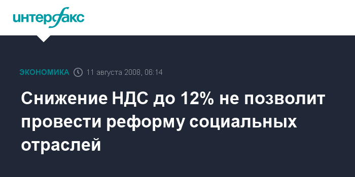Снижение НДС до 12% не позволит провести реформу социальных отраслей