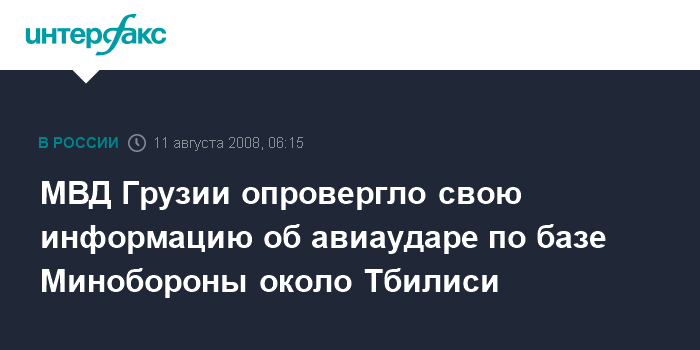 Тбилиси. 11 августа. INTERFAX.RU - МВД Грузии, которое ранее сообщало, что российская авиация сбросила бомбы на территории военной базы в Коджори, опровергает эту информацию.