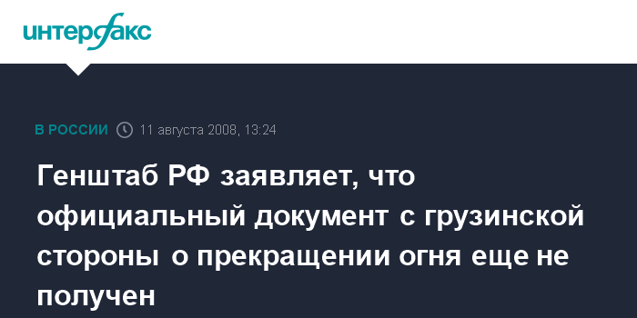 Генштаб РФ заявляет, что официальный документ с грузинской стороны о прекращении огня еще не получен