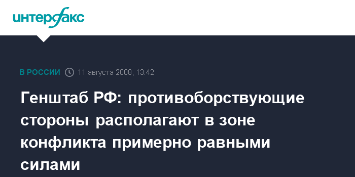 Москва. 11 августа. INTERFAX.RU - Соотношение сил в зоне грузино-осетинского конфликта выровнялось, заявил заместитель начальника Генштаба Вооруженных сил России генерал Анатолий Ноговицын. "Сейчас группировки примерно равные - после того как произвели усиление миротворческих сил. Это там, где идут боевые действия", - уточнил российский военный на брифинге в понедельник в Москве.