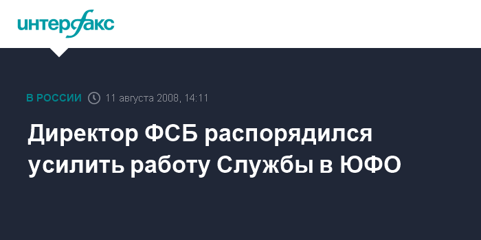 Москва. 11 августа. INTERFAX.RU - Директор ФСБ Александр Бортников дал указание усилить деятельность ФСБ и Погранслужбы в Южном федеральном округе.