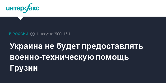 Киев. 11 августа. INTERFAX.RU - Украина не рассматривает возможность предоставления военно-технической помощи Грузии.
