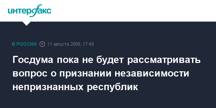 Госдума пока не будет рассматривать вопрос о признании независимости непризнанных республик
