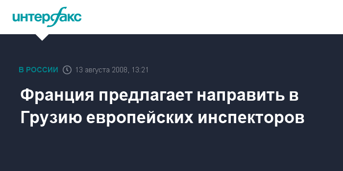 Брюссель. 13 августа. INTERFAX.RU - Министр иностранных дел Франции Бернар Кушнер заявил в среду, что рассматривает идею отправки в Грузию инспекторов Европейского Союза, которые помогали бы миротворцам.