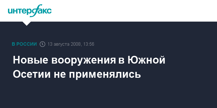 Москва. 13 августа. INTERFAX.RU - Представитель Генштаба России заявил, что в зоне грузино-осетинского конфликта Вооруженные силы РФ не применяли какие-либо новые вооружения.