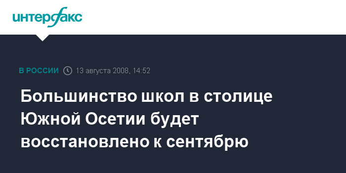 Москва. 13 августа. INTERFAX.RU - Глава МЧС России, руководитель федерального оперативного штаба по ликвидации последствий вооруженного конфликта на территории Южной Осетии Сергей Шойгу выразил надежду, что к 1 сентября в Цхинвали удастся восстановить шесть из девяти школ и интернат.