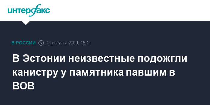Как сообщила в среду пресс-служба Восточной префектуры полиции Эстонии, у подножья монумента, расположенного на улице Койдула (Koidula), неизвестные подожгли пластмассовую канистру с топливом. Горевшую канистру обнаружил проезжавший полицейский патруль, который сразу же ее затушил.