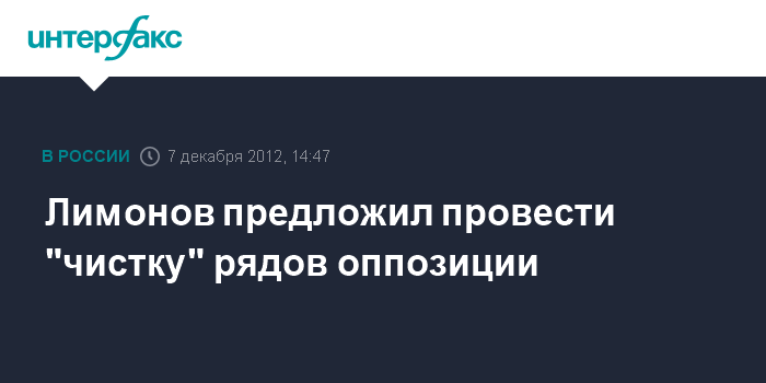 "Если бы такая чистка состоялась, то я бы смотрел на сторонников либеральной оппозиции с большей приязнью. Это дало бы возможность для сближения, для преодоления раскола", - заявил Лимонов.