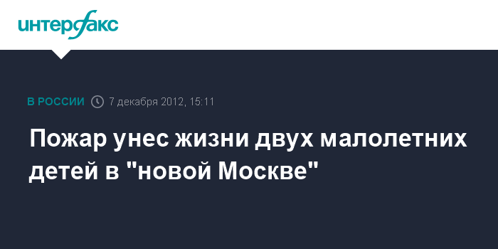 Москва. 7 декабря. INTERFAX.RU - Два ребенка погибли в результате пожара в поселке на территории "новой" Москвы, сообщил "Интерфаксу" источник в правоохранительных органах.