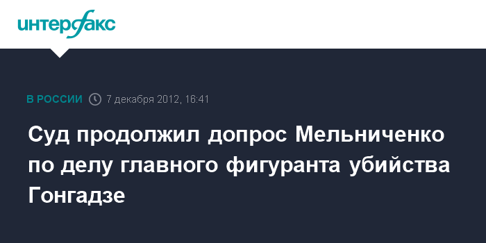 Киев. 7 декабря. INTERFAX.RU - Печерский районный суд Киева в пятницу продолжил допрос экс-майора Госохраны Николая Мельниченко в качестве свидетеля по делу главного фигуранта убийства журналиста Георгия Гонгадзе - экс-начальника департамента наружного наблюдения МВД Украины Алексея Пукача.