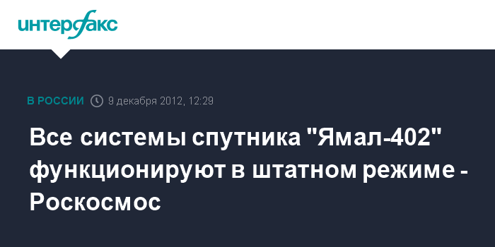 Все системы спутника "Ямал-402" функционируют в штатном режиме - Роскосмос