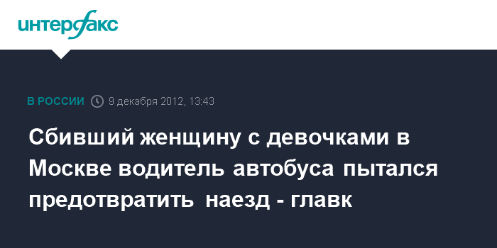 Сбивший женщину с девочками в Москве водитель автобуса пытался предотвратить наезд - главк