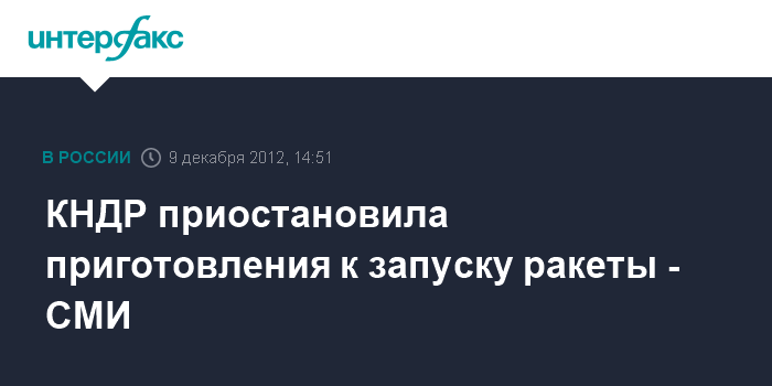 Сеул. 9 декабря. INTERFAX.RU - Северокорейские власти приостановили подготовку к запуску ракеты со спутником, сообщает в воскресенье АФП со ссылкой на южнокорейские СМИ.