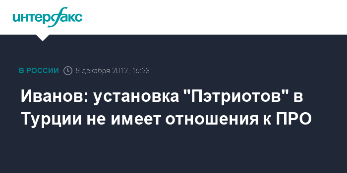 Иванов: установка "Пэтриотов" в Турции не имеет отношения к ПРО